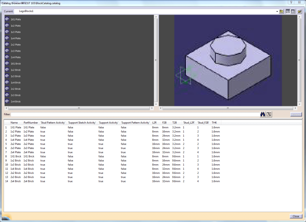 This project was for my CGT 113 class where we designed a lego block and used a design table to create a set of lego blocks.