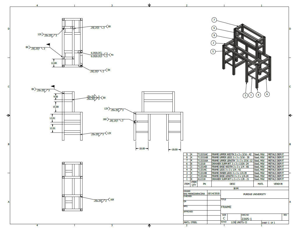 This project was for my MET 102 class where I designed and created drawings for an Arbor Press and a workbench with it.