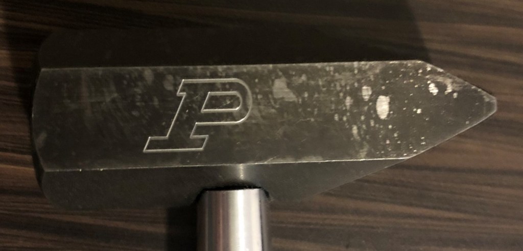 To create my tool paths, I drew both of my designs in SolidWorks. On my first side, I decided to do the Purdue P; this was a generally simple design, but I feel it suits the project well. On the second side, I created an infinity sign pattern that covers the side of the hammer. Using SolidWorks made this project exponentially easier as after I got my drawing modeled, the process became finding the points using a tool on SolidWorks. Then putting those coordinates with the corresponding G-code command (G01, G02, or G03). Another advantage I found using SolidWorks was a lack of trial and error.