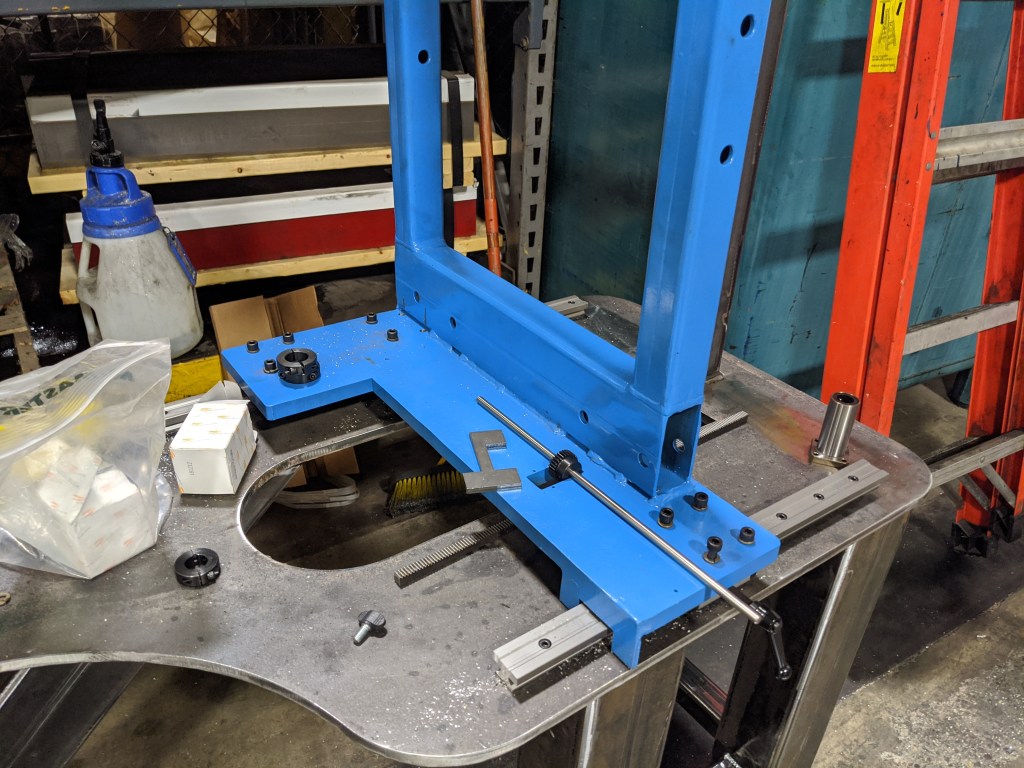 This was one of two of my main projects at Oscar Winski. At the beginning of my internship I was assigned to redesign a saw table that was used to cut legs off of u shaped part. As my I developed my project I was able to implement several features to the old design including: adjustable both horizontally and vertically, replaceable parts, and a way to catch metal chips.